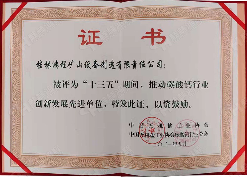 桂林鴻程榮獲“十三五”期間推動(dòng)碳酸鈣行業(yè)創(chuàng)新發(fā)展先進(jìn)單位